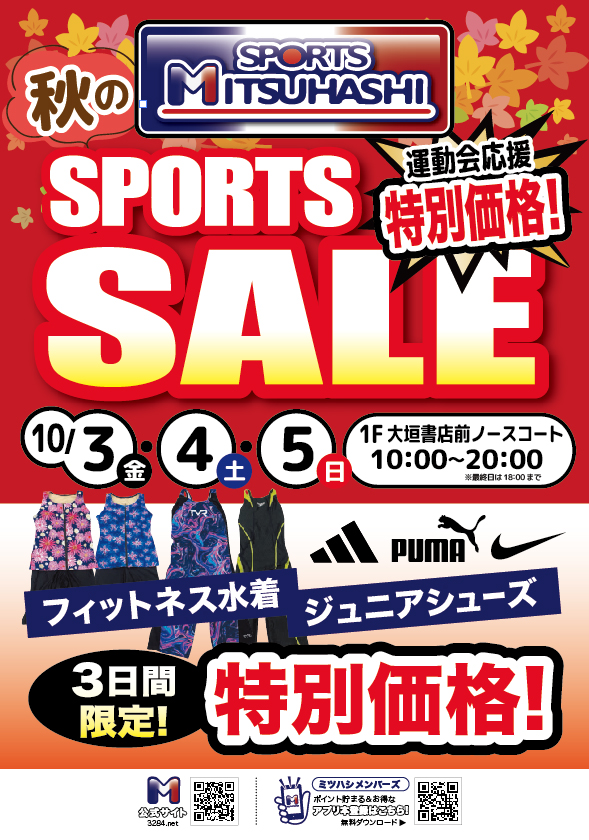 \フォレオ大津一里山にて/【催事のご案内】10/3(金)より🍂【3日間限定】秋のSPORTS SALE開催!