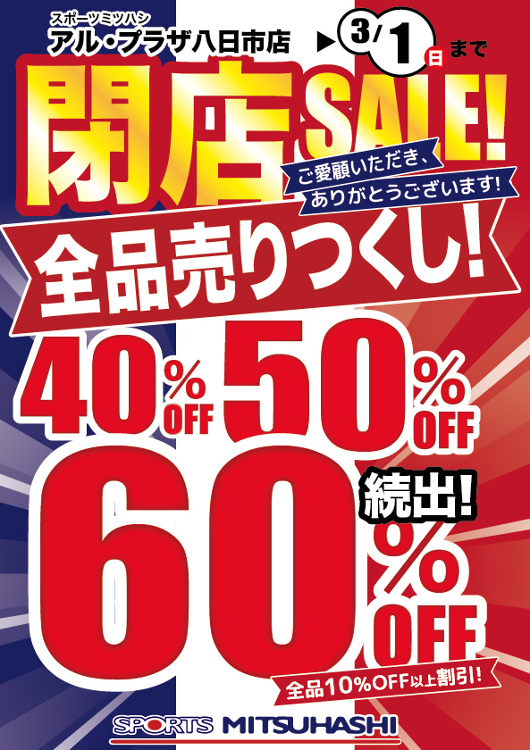 \アルプラザ八日市店/【最大60%OFF】閉店SALE開催中|3/1(日)まで