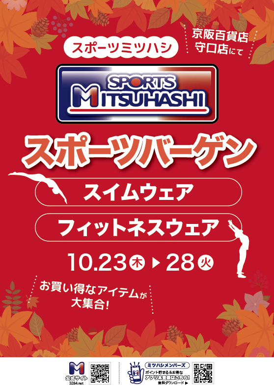 【催事のご案内】10/23(木)より!スポーツバーゲン開催!京阪百貨店 守口店にて✨
