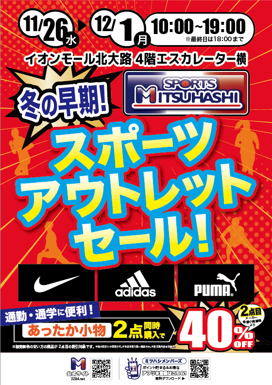 【催事のご案内】11/26(水)より!冬支度のチャンス!スポーツアウトレットセール開催🎉